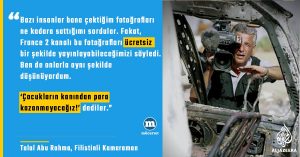 Bazı insanlar bana çektiğim fotoğrafları ne kadara sattığımı sordular. Fakat, France 2 kanalı bu fotoğrafları ücretsiz bir şekilde yayınlayabileceğimizi söyledi. Ben de onlarla aynı şekilde düşünüyordum. ‘Çocukların kanından para kazanmayacağız!’ dediler.