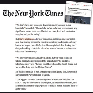 Bugün bütün dünyayı kuşatan koronavirüs salgınında iktidarı ve muhalefetiyle bu felaketi elbirliğiyle atlatmamız gerekirken bu şizofrenik anlayış tarihi bir yanılgı içinde iktidarı eleştirip puan kapma telaşına giriyor. Mesela CHP’li bir milletvekili ABD’nin önde gelen gazetelerinden Newyork Times’a ülke çapında yapılan testlerin yetersiz olduğunu ve gerçekte çok daha fazla enfekte hasta olabileceğini söylüyor. Ve bakın kendi ülkesini kötülemek için ne tür ifadeler kullanıyor. “Şu an ne yazık ki; İtalya ve ABD olma yolundayız.”